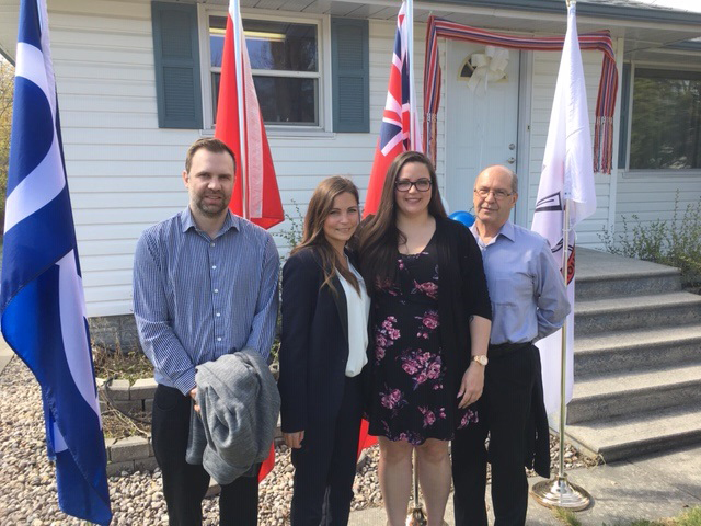 Louis Riel Capital Corporation Staff with Manitoba Métis Federation citizen Dominic Bourgeois standing in front of her new home purchased through the MMF's First Time Home Purchase Program.